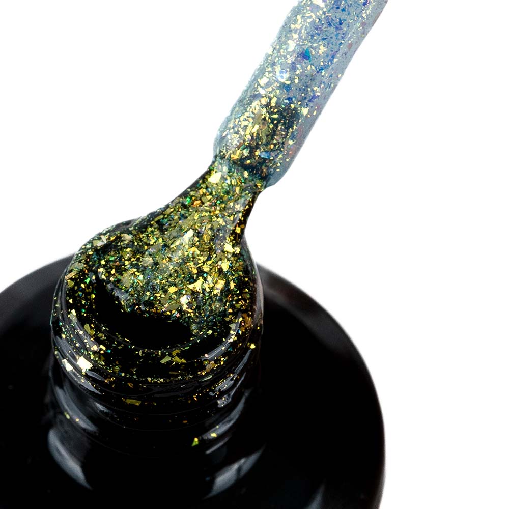 Apply it alone for a quick, striking result, or pair it with other materials for a unique multidimensional effect. A thin layer over glitter enhances the shine; a thicker coat works beautifully on its own for a radiant finish.