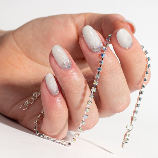 A white gel polish base enriched with fine-grain glitters, which can be used both as an undercoat and on its own. As a part of the Flexi family, Glitter White is also flexible and soak-off, allowing it to follow the nail plate's movements exceptionally well, thereby creating an extra durable base on the nail surface.