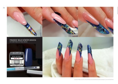 36 MINDENT BELE! KÖRÖM DESIGN PUT EVERYTHING IN IT! NAIL DESIGN 01. Készítette / Made by: Gyimesi Dóra - Classic Line Medium Clear Gel, Deluxe Natural Gel, Deluxe Camouflage Gel, Color UV Gel 16. Blue, Nail Arts