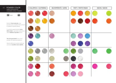 60 POWDER COLOR CSILLÁMOS / GLITTERING SELYEMFÉNYŰ / SATIN MATT / MATTE FINISH NEON / NEON